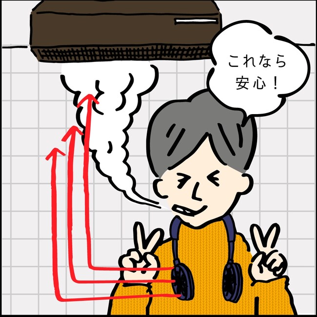 ◆煙が広がらない!WFanの風で煙を換気扇へ誘導!
