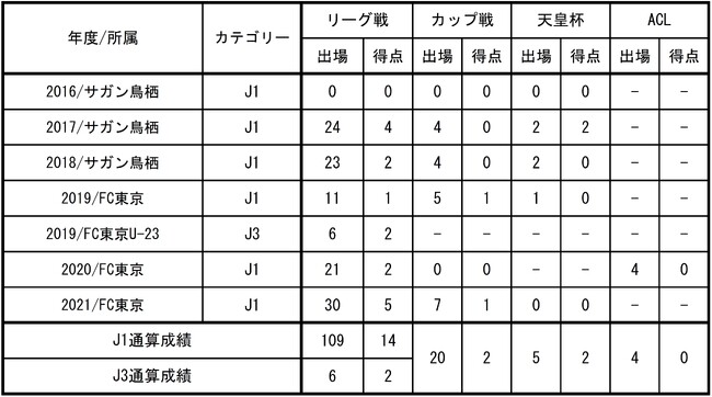 □出場記録(2023年7月27日時点/国内クラブ所属時のみ)
