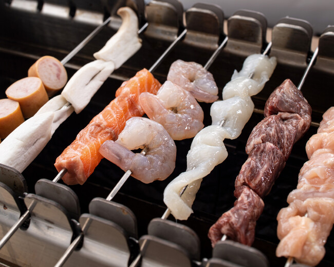 新しいBBQ体験!全卓設置の自動回転串焼き機で焼く"くるり串"と30種類の「スパイス」