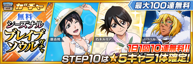 期間中、最大100連を無料で引ける「無料シーズナルブレイブソウルガチャ」を実施!