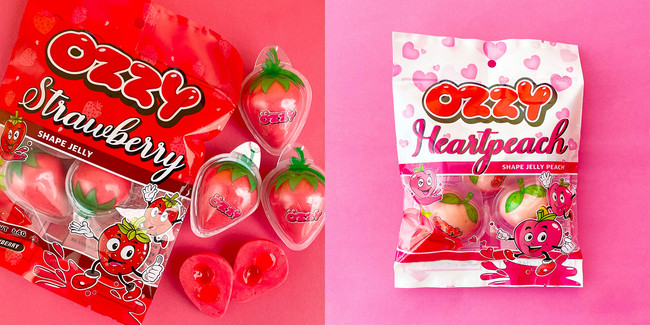 左から OZZY ストロベリーゼリーグミ、ピーチゼリーグミ 各529円