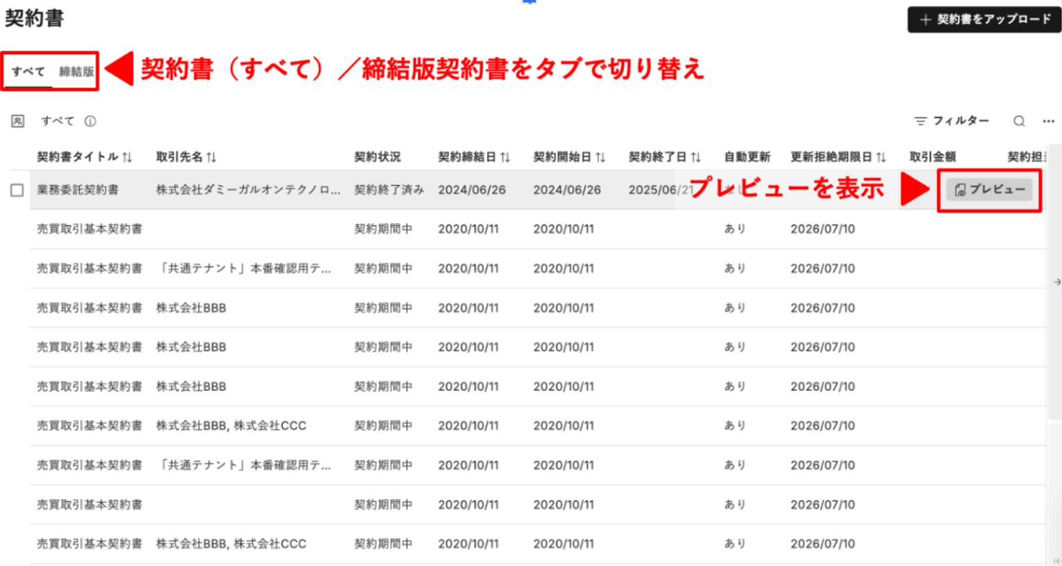 ・一覧画面を統合し、契約書の状態を一目で把握可能に