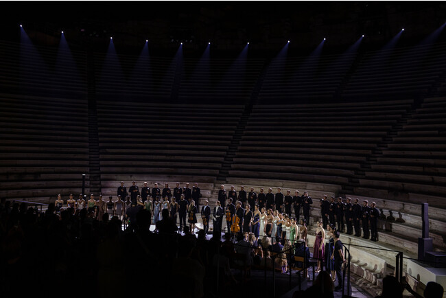 2023年6月13日(現地時間)ールイ・ヴィトンの新作ハイジュエリー コレクション「Deep Time(ディープ タイム)」の発表にあたり、世界最古かつ最も優れた野外劇場の一つとされるギリシャのイロド・アティコス音楽堂のステージにて、モデルプレゼンテーションを開催しました。アクロポリスの丘の中腹に建つこの円形劇場では、2千年もの間、さまざまな芸術家たちが公演を行ってきました。本プレゼンテーションでは、著名なギリシャの振付家 ディミトリス・パパイオアヌーが演出を手掛け、フランスのヴァイオリニスト ルノー・カピュソンが新作コレクションのビジョンを伝えるメロディーを作曲しました。
