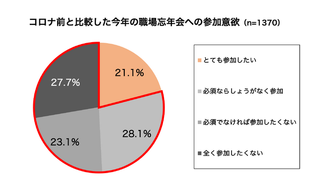 【働く女性1,370人に聞く、職場忘年会に関する意識調査】コロナ前と比べ職場忘年会への参加意欲が低下した人は約8割