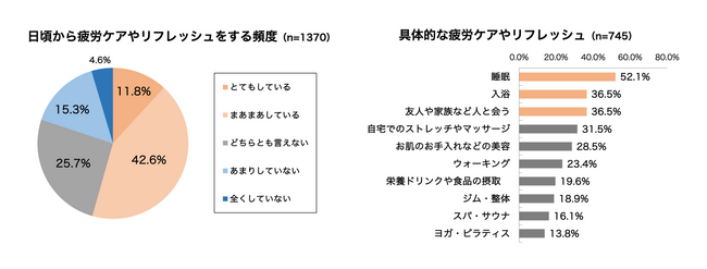《日頃から疲労ケアやリフレッシュをしている人は約5割。人気の疲労ケア方法は「睡眠」、「入浴」、「友人や家族など人と会う」》