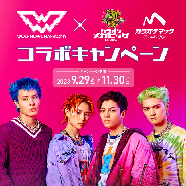 株式会社第一興商グループが運営するカラオケメガビッグとカラオケマックは、2023年8月23日にメジャーデビューを果たしたWOLF HOWL HARMONYとコラボレーションを展開します。