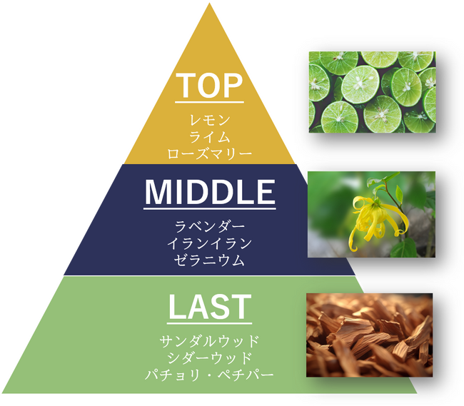 精油を高配合したシトラス・フローラル・ウッディーのみずみずしく心癒される香りで、自然の中でリセット&チャージする瞬間を想起させます。