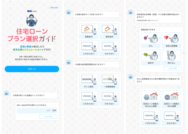 「価格.com」、「住宅ローンプラン選択ガイド」を提供開始 -チャット形式の質問に答えるだけで条件に該当するプランを探せます-
