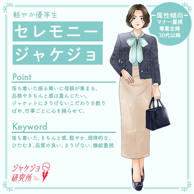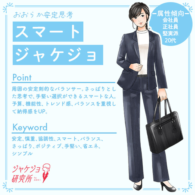 AOKIが運営する「ジャケジョ研究所」が、女性の最適なスーツ選びをサポートする『ジャケジョクラスタ』を開発!〜仕事やライフスタイルの価値観などから、6つのクラスタを可視化〜