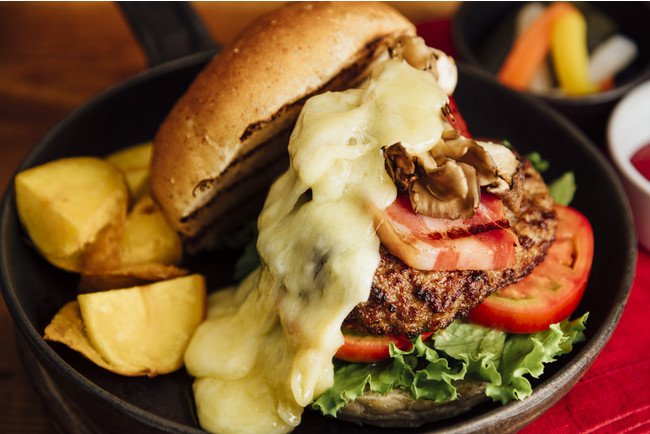 やわらかくジューシーな信州牛ハンバーグを、きのこや野菜とともに信州地粉を使用したバンズで挟んだボリューム満点の逸品です。とろけるラクレットチーズと、トリュフの風味とともにお楽しみください。