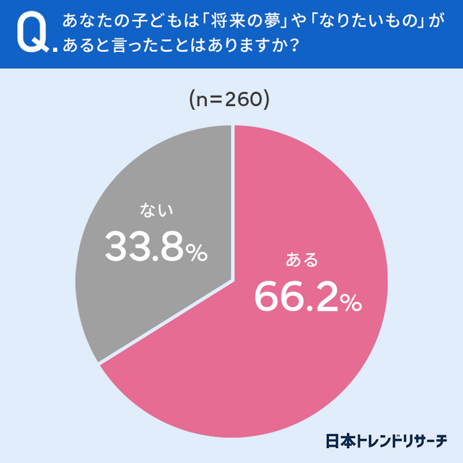 66.2%の子どもが「将来の夢」や「なりたいもの」があると言ったことが「ある」と回答しています。