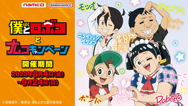 株式会社バンダイナムコアミューズメントは、TVアニメ「僕とロボコ」とのコラボキャンペーン「僕とロボコとナムコキャンペーン」を2023年8月4日(金)〜2023年9月24日(日)まで、対象の直営アミューズメント施設「namco」で開催します。
