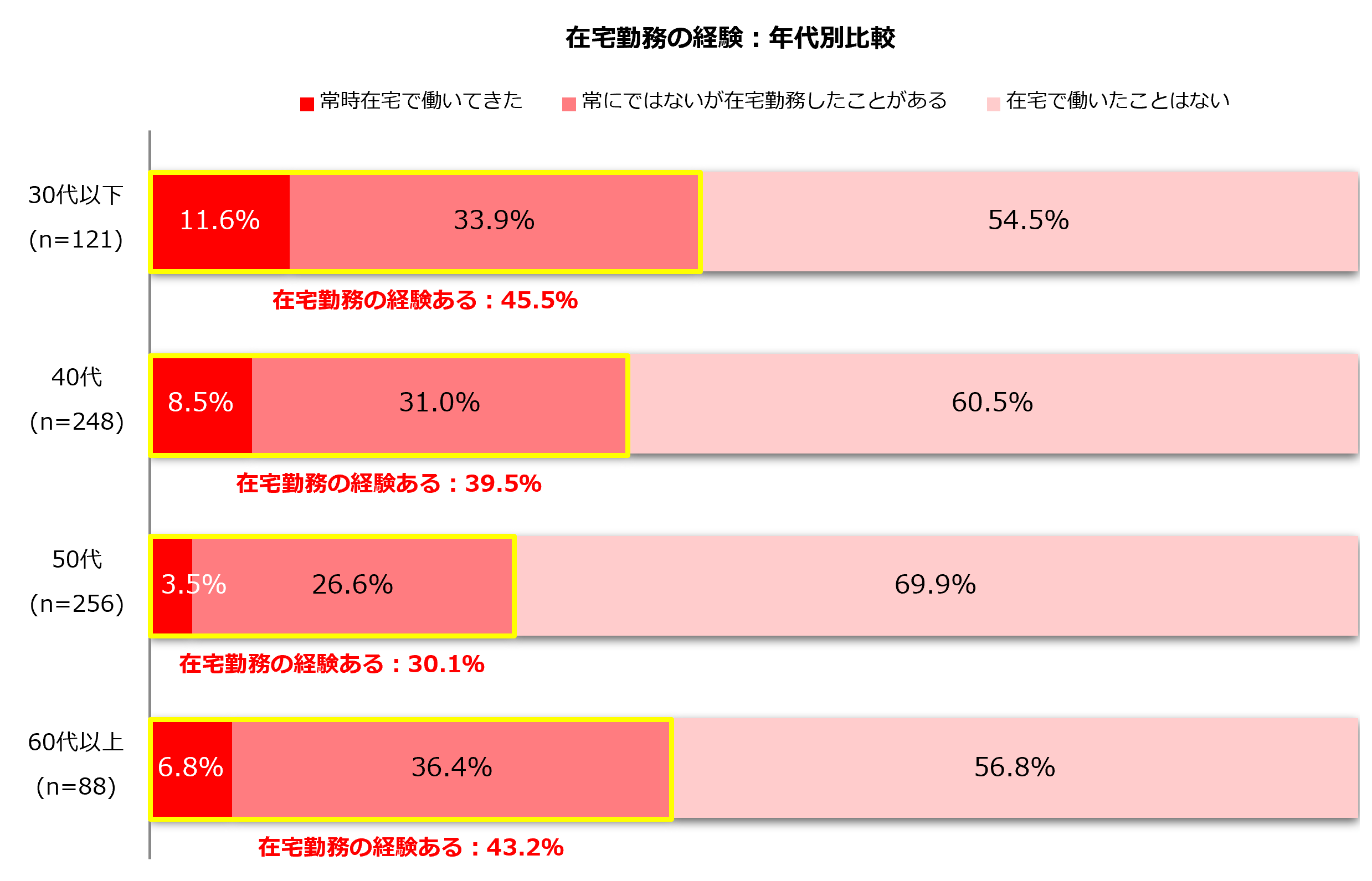 1.在宅勤務をしたこと「ある」37.6%(※前回調査より)/年代別