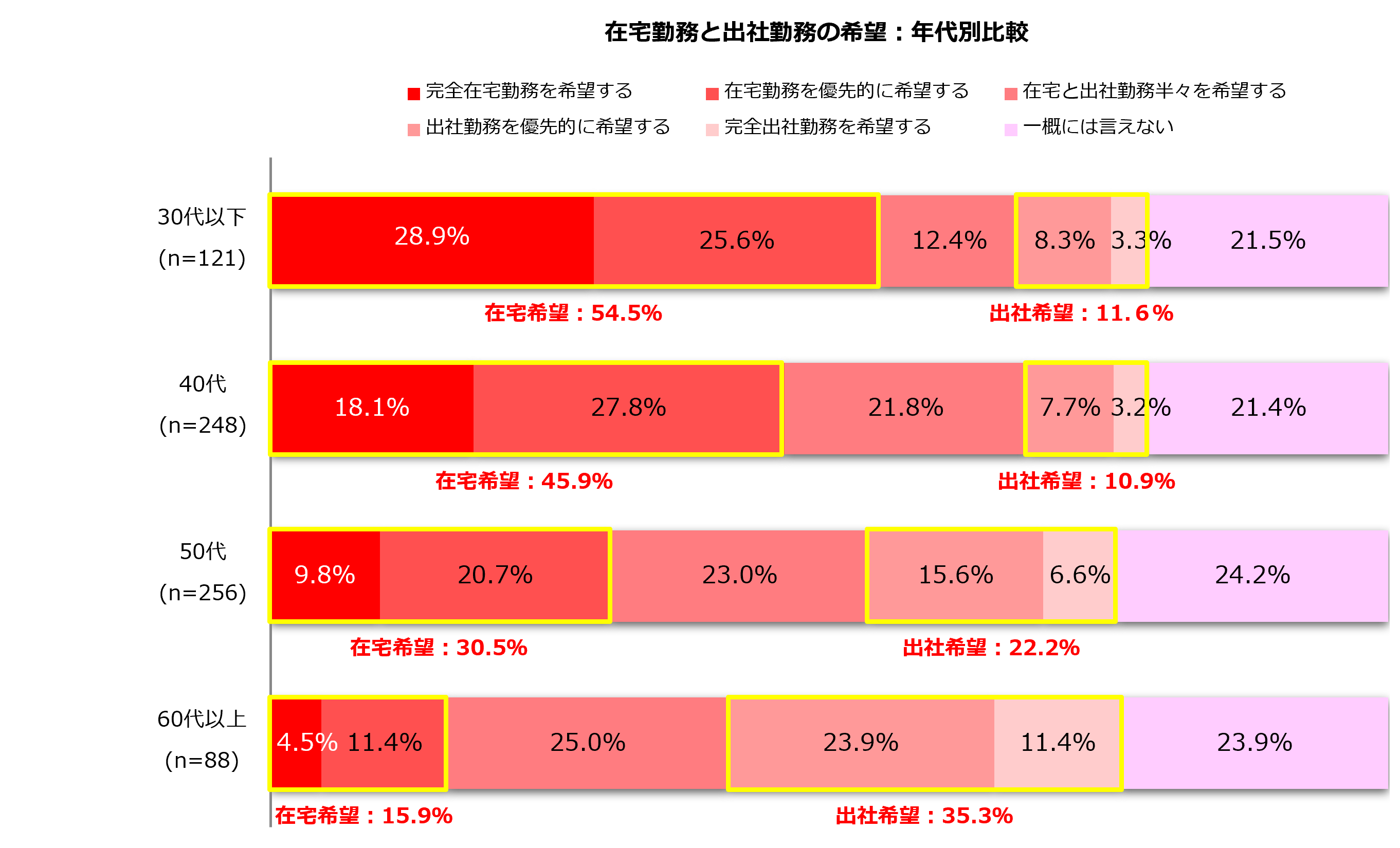 2.希望する働き方「在宅希望」38.2%・「出社希望」18.1%/年代別