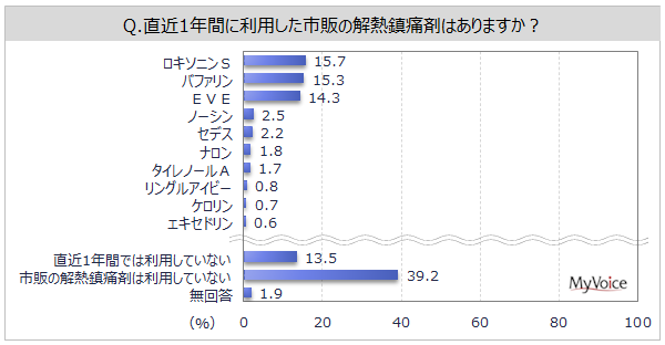 直近1年間に利用した解熱鎮痛剤