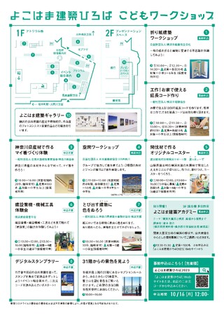 11 月11 日(土)に、横浜市役所で、建築をテーマにした子どもも大人も楽しめるイベント『よこはま建築ひろば』を開催します。また、関連イベントとして、公共建築にまつわる展示や、デジタルスタンプラリー、そして市役所最上階の開放を予定しています。丸一日建築づくしの空間に、ぜひお越しください。