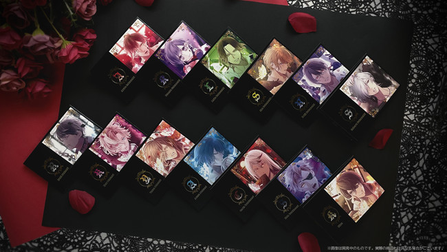 「DIABOLIK LOVERS」10周年を記念して描き下ろされた「FARFALLA LUCIO(ファルファラ ルシオ)」のイラストを使用したノベルティは3種類。いずれも、「VAMPIRE CAFE」のコース&ドリンクをオーダーした場合のみ入手できる、今回のコラボレーションだけの特典です。10周年の思い出の品として、ぜひとも貴女のお手元に…。