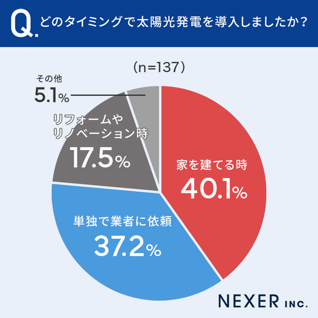 40.1%とほぼ4割の方が「家を建てる時」に太陽光発電を導入した、と回答しています。