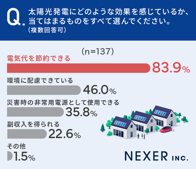 ■太陽光発電に感じる効果、83.9%が「電気代を節約できる」