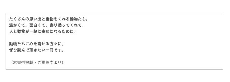個性あふれる7匹のホゴイヌたちとのエピソードを読めば、彼らのことを愛さずにいられなくなるでしょう。それぞれにそれぞれの物語があり、見せてくれるしぐさや表情も、みんな違っているのです。一度読んだら忘れられない。愛しい愛しいイヌたちの物語に、ぜひともふれてみて下さい。