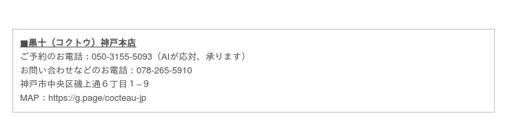 神戸三宮/磯上「黒十(コクトウ) 神戸本店」では