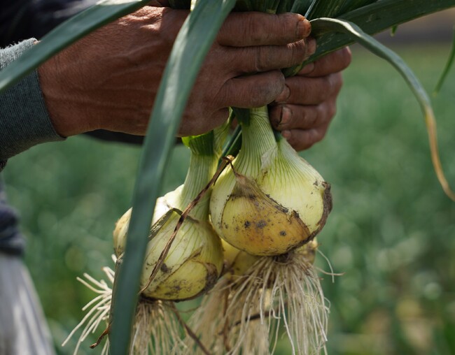 泉州たまねぎは水分が多くて瑞々しく、甘みとコクがあることが特徴の大阪府南部 泉州エリアで栽培されているブランド玉ねぎです。射手矢ファームでは、辛みがほとんどなく甘い一級品の玉ねぎに仕上げています。