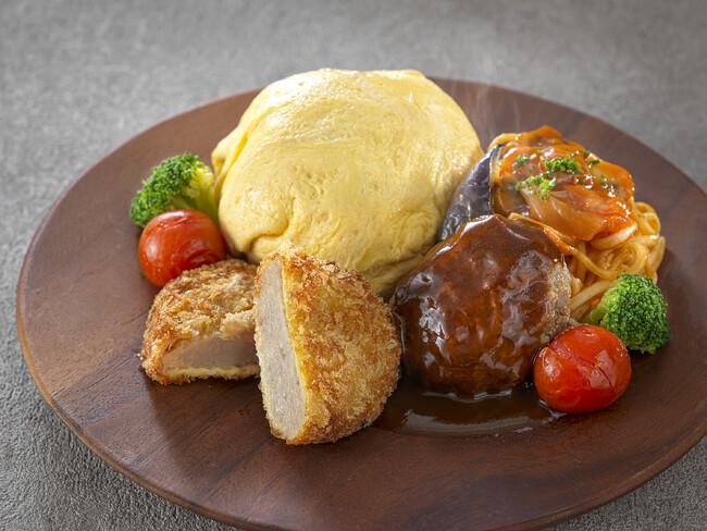 シェフのオリジナル和牛ハンバーグやオムライスに特製デミグラスソースを添えたボリュームたっぷりのランチBOX。