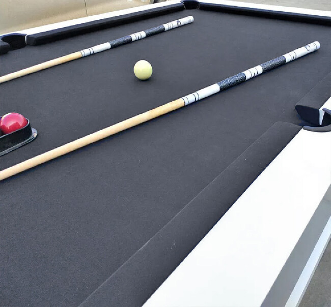 GeePoolは、メインのビリヤード台と、ビリヤードをお楽しみいただくためのキューやボール、ラックやカバーなど必要なものが揃ったセット内容になっております。