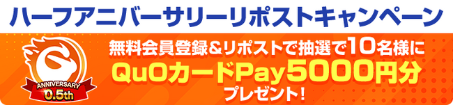 ハーフアニバーサリーを記念して、リポストキャンペーンを開催!GAPOLIに会員登録されている方で公式Xをフォローし、リポストした人の中から抽選で10名様に5,000円分のQuoカードPayをプレゼント!