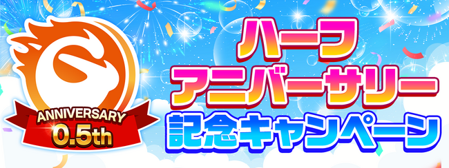 次世代型オンラインゲームセンター『GAPOLI』サービスリリースから0.5周年を記念して、ハーフアニバーサリー記念キャンペーンを開催!大変お得な7種類のキャンペーンを実施いたします。