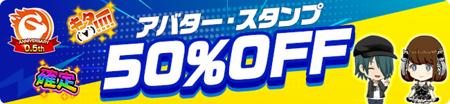 ハーフアニバーサリーを記念して、7/27(木)以前に販売開始したアバター・スタンプを半額で販売!