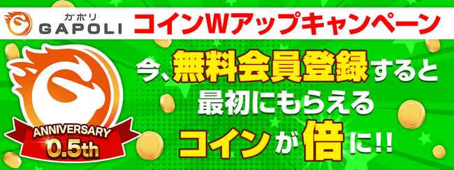ハーフアニバーサリーを記念して新規フリープラン登録時の初期付与コインが倍増します!
