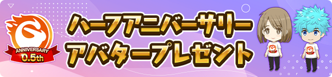 ハーフアニバーサリーを記念したロゴの入ったTシャツのアバターを期間中にログインした方、“全員”にプレゼント!