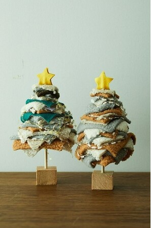 生地のハギレを使ってもこもこファブリックツリーを作りましょう♪お部屋にもなじみやすいナチュラルなデザインのツリーをぜひ冬のインテリアに。