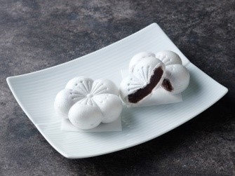 梅をかたどった白色の皮にこし餡を詰めました。