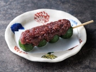 もっちりとしていて歯切れの良いお団子にたっぷりと粒あんをのせました。