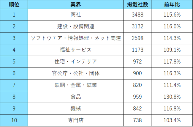 〜掲載社数は前年比約1,800社増で過去最高。企業の採用意欲は更に高まる〜