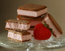 フレッシュな苺をかじったときのような酸味がアクセントになった爽やかなチョコレートサンド。人気のピスタチオフレーバーとのハーフセット。