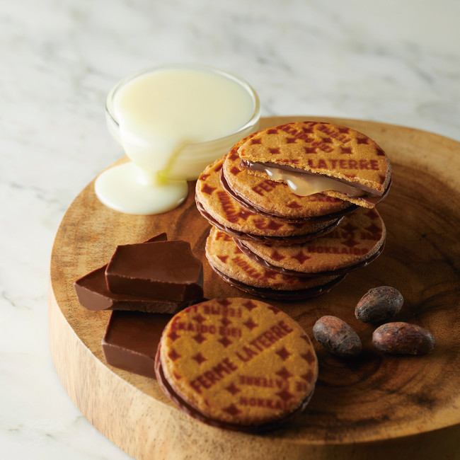 とろける練乳ソースをチョコレートでコーティングし、北海道美瑛産小麦を使用したサクサク食感のクッキーでサンドした、どこか懐かしい味わいのお菓子です。