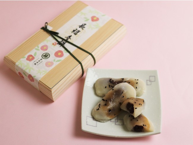 <笹屋伊織>に昔から伝わる形をそのままに、やわらかな餅と粒あんが織り成す至福の逸品を復刻。「長く幸福が続きますように」と願いを込めて、職人が一つひとつ丁寧に焼きあげます。