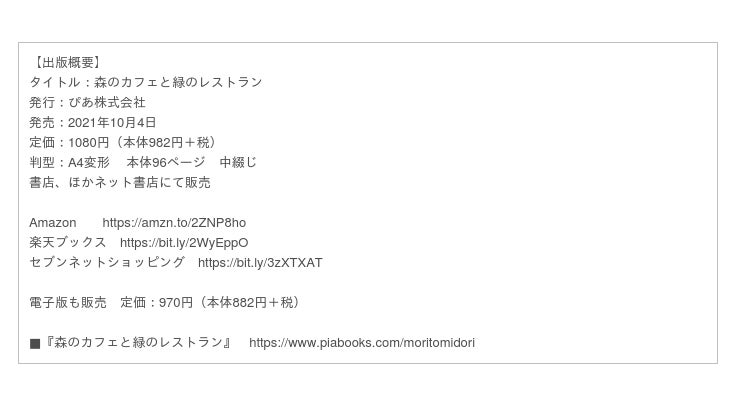 昨年10月4日にぴあ株式会社より発売した『森のカフェと緑のレストラン』の3刷が決定いたしました。
