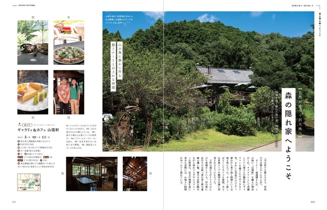 本誌では、奥多摩、青梅、鎌倉、箱根、丹沢、日光などの、隠れ家のような小さなカフェや、緑に包まれたテラスのあるレストランをご紹介。