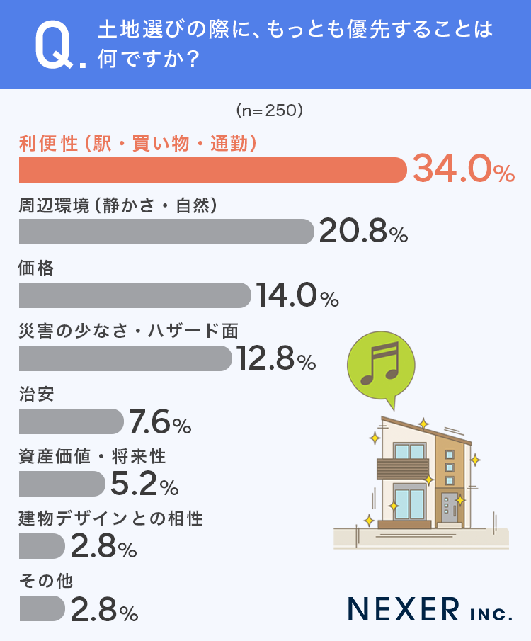 ■34%が「利便性」を土地選びで最優先