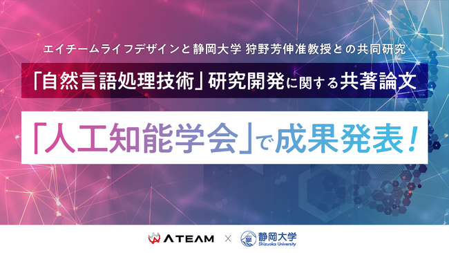 「自然言語処理技術」研究開発に関する共著論文「人工知能学会全国大会」で成果発表!エイチームライフデザインと静岡大学 狩野芳伸准教授との共同研究
