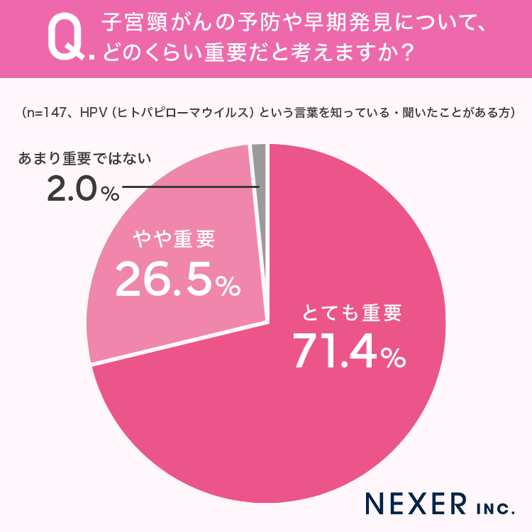 続いて、子宮頸がんの予防や早期発見について、どのくらい重要だと考えているかを聞いてみました。