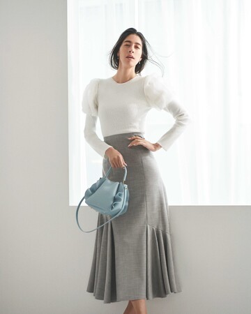 繊細かつリュクスなプリーツフリル袖は、HANAE MORI のコレクションを引き継ぐクチュール感覚あふれるデザイン。ニットとドッキングさせることで、デイリーシーンでも活躍します。