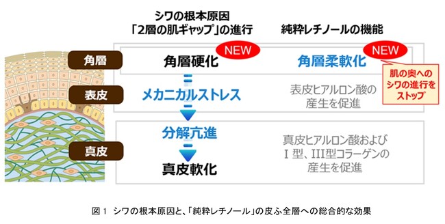 資生堂、「純粋レチノール」が角層を柔軟化し、皮ふ表面から奥へのシワ進行を抑制する新機能を発見 〜シワの根本原因「2層の肌ギャップ」を進行させる角層硬化へ対応〜