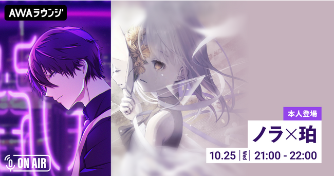 AWA株式会社(本社:東京都港区、代表取締役CEO:冨樫晃己)が運営する、サブスクリプション型(定額制)音楽ストリーミングサービス「AWA(アワ)」は、2023年10月25日(水) 21:00〜22:00の1時間に渡り、無料で誰でも参加できるオンライン空間「ラウンジ」で、音楽ユニット「今夜、あの街から」として活躍するボカロPノラ、アニメ・マンガのキャラクターの新解釈をコンセプトに活動するシンガーソングライター珀が音声とチャットで参加するAWAラウンジを開催いたします。