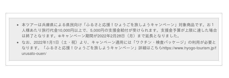 ■ ツアー催行日:JR神戸駅前発着・・・2022年1月10日(月・祝)、14日(金)、16日(日)、20日(木)、26日(水)、30日(日)、2月3日(木)、9日(水)、14日(月)、18日(金)、23日(水・祝)