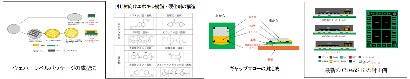 ? 封止材原料のエポキシ樹脂や硬化剤の情報、処方設計のためのコツ、製造工程の一例、信頼性評価、品質管理から最新のパッケージトレンドまで、幅広いトピックを紹介!